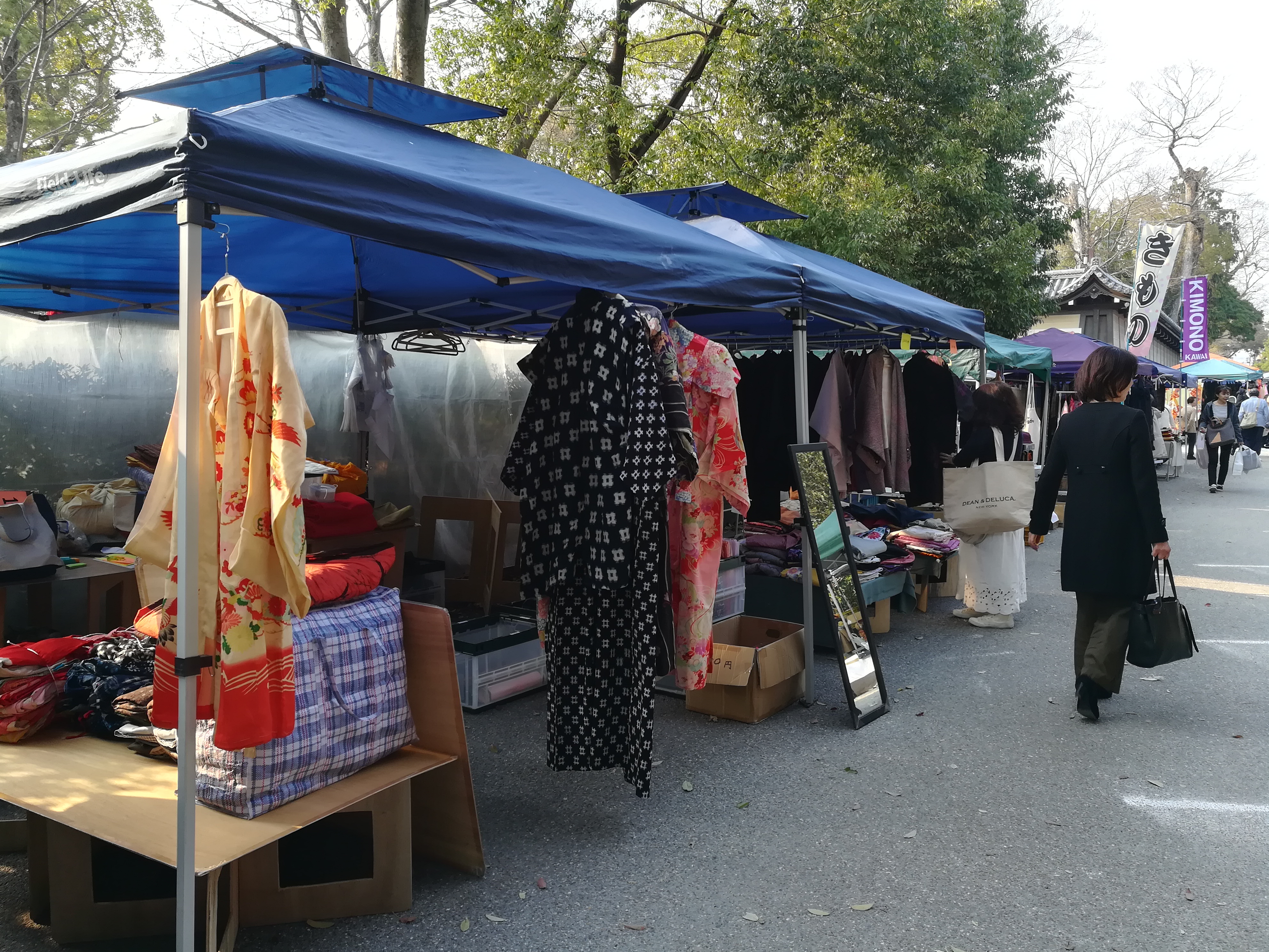 I don’t think it would be underestimating it to say give yourself several hours here, if not all day. After all there is more than just the kimono to see, one mustn’t forget the shrine itself and, if you are there in season, it’s plum blossom garden! Also, just when you think you have reached the end of the line of tents there is a corner to turn and even more to see! And while the market officially winds down around 5pm – you will find sellers doing business for as long as there are people to buy from them.
